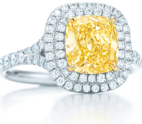 宝石切割师对Tiffany黄钻特别进行枕形切割,可以使钻石最大限度折射出耀目光芒。纯净如阳光一般的色泽,以及超凡的饱和度与艳彩度使得Tiffany黄钻非同寻常,成为全世界最为顶级的钻石臻品之一。